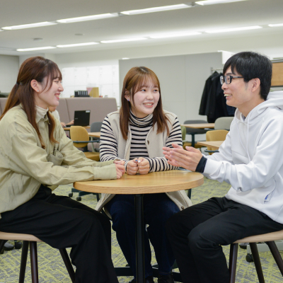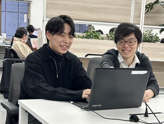 学生の皆さんからは、「先輩社員と話すことで会社の雰囲気を掴めた」「働くイメージが具体的に持てた」という声をよくいただきます。分からないことがあれば、パソコンを持って先輩の席に行き、一緒に画面を見ながら相談する。いつでも身近にサポートしてくれる人がいる光景は、シンクではごく自然なものです。その結果として、学生の皆さんに「この人たちと一緒に働きたい」と感じてもらえているのではないかと思っています。
