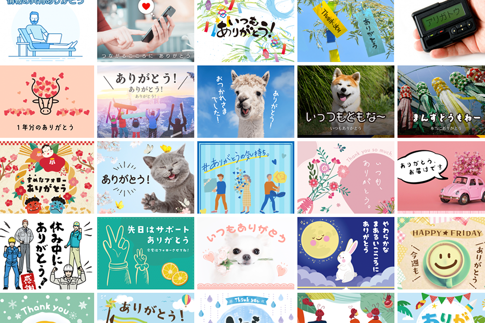 2018年のサービス開始以降、700社以上が導入し、これまでに送られた「ありがとう」はおよそ700万枚にのぼります。画面上に次々と流れていくカードはメッセージとデザインが響き合い、それを送った人の気持ち、受け取った人がそこに至るまでに積み上げてきた行動、そしてその関係性の温度が宿っています。