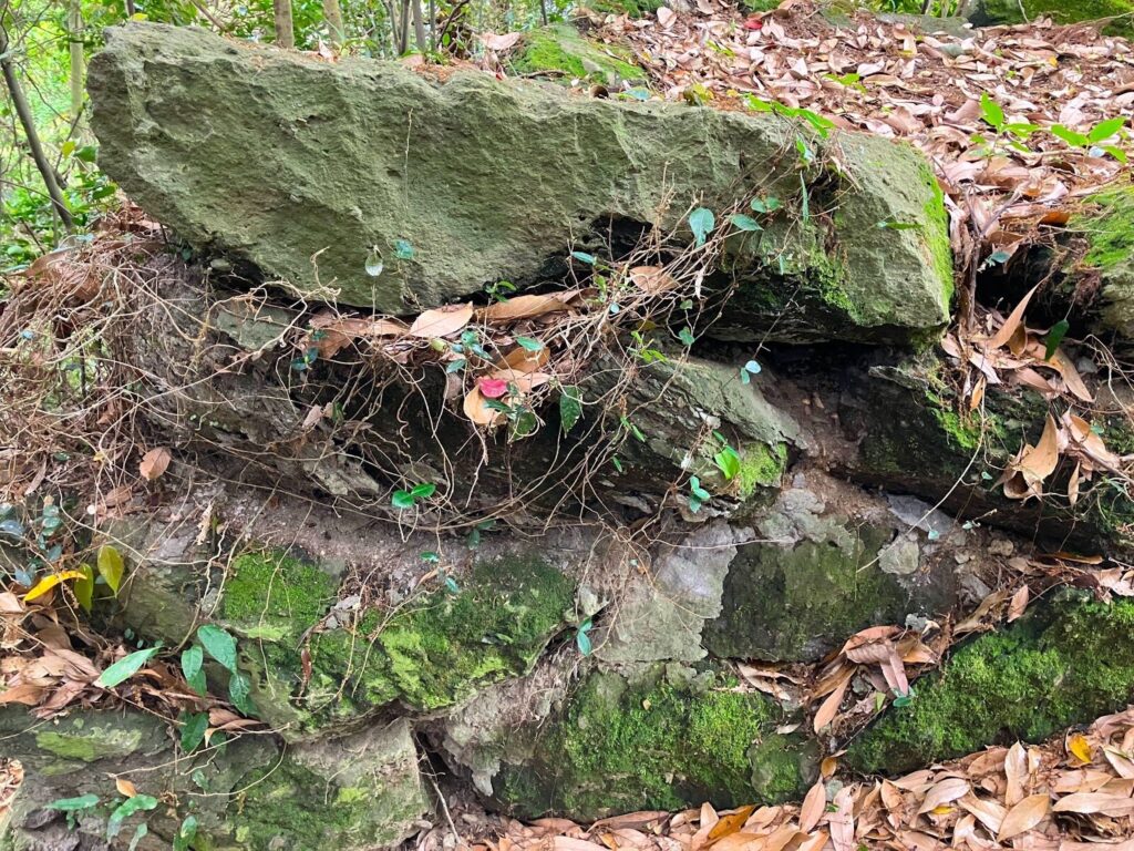 よく見ると足元は舗装されたような跡もあるし、斜面側の岩も頑丈そうでしっかりしている。