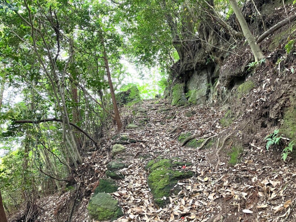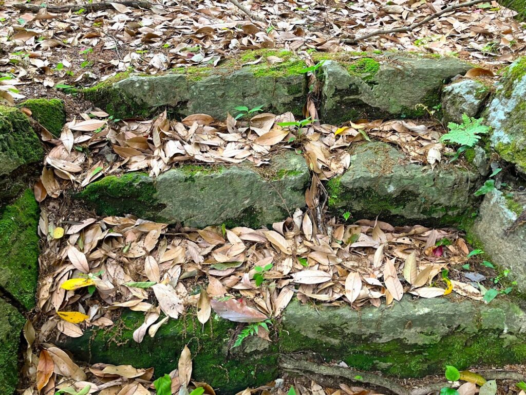 足元には石を積み上げた階段がありました。人の手が加えられている証です。