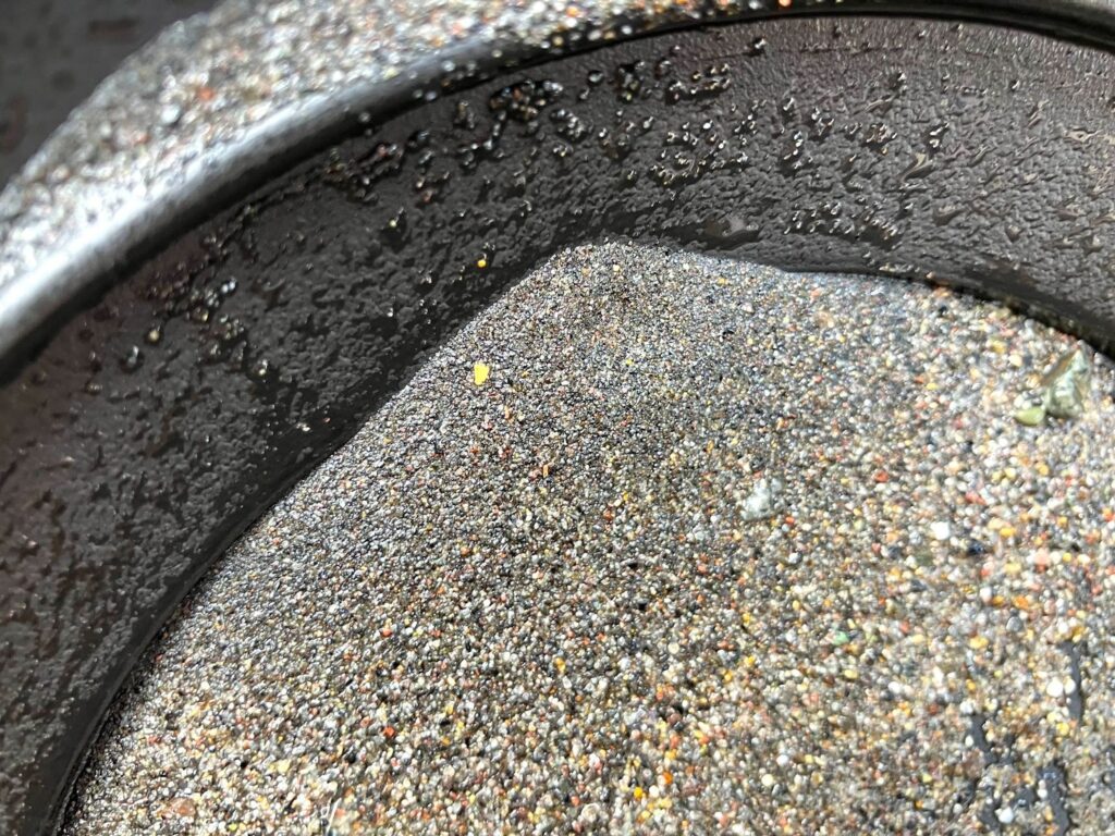 お皿の砂がほぼなくなるまで繰り返し洗い流す。