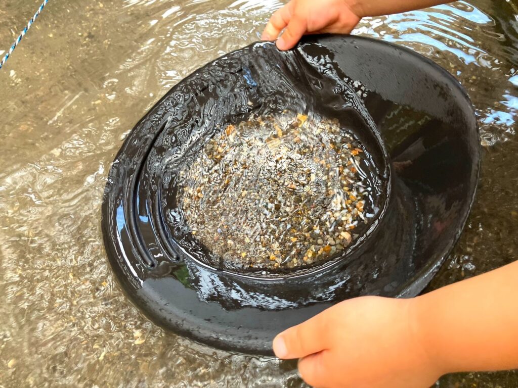 砂金入ってないんじゃない?と疑いたくなるが、他のところでは「あった!」「採れた!」と声が上がっており、砂金は確かに採れている。