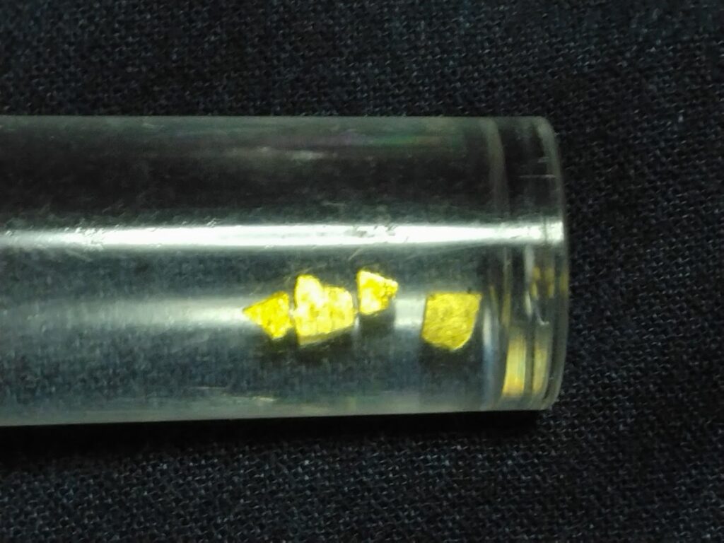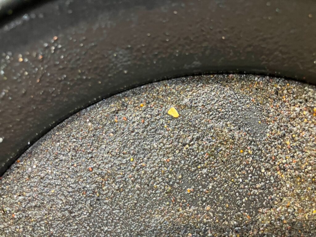 制限時間の30分はあっという間に過ぎてしまった。最終的に砂金は5粒ほど。写真を撮ろうとも、かなりズームしないとよくわからない。これではとてもお金持ちになれる量ではないが大満足だ。