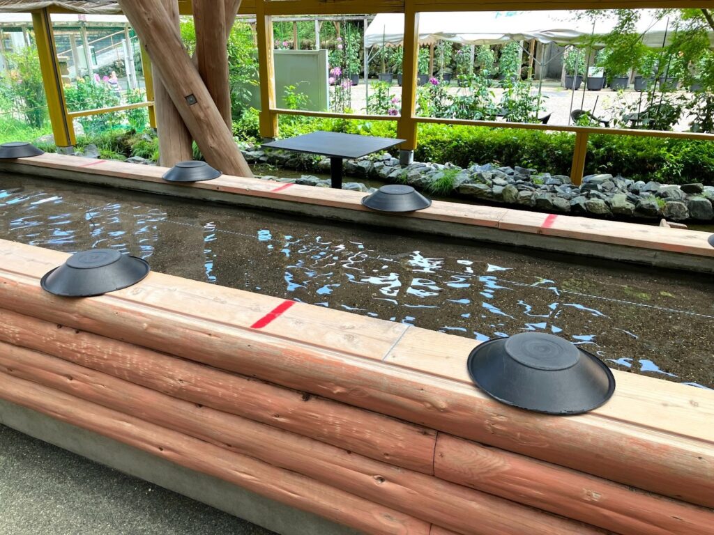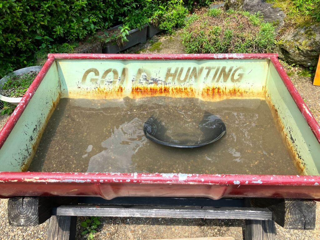 入り口前にある砂金採り練習場で軽く腕鳴らしだ。看板に手順が書いてあるので助かる。
