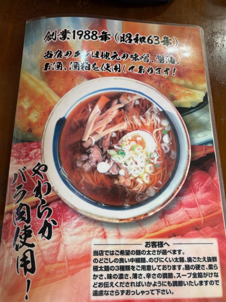 ラーメン勝負にはオロチョン以外にも魅力的なメニューが豊富である。例えば焼肉ラーメンである。これは以前筆者がここを訪れた際に餃子とセットで食べたもので、焼肉といえば脂っこいイメージがあるが大量のバラ肉にあんかけ風スープのおかげでギトギトした感じはなく、さっぱりした味わいだった。