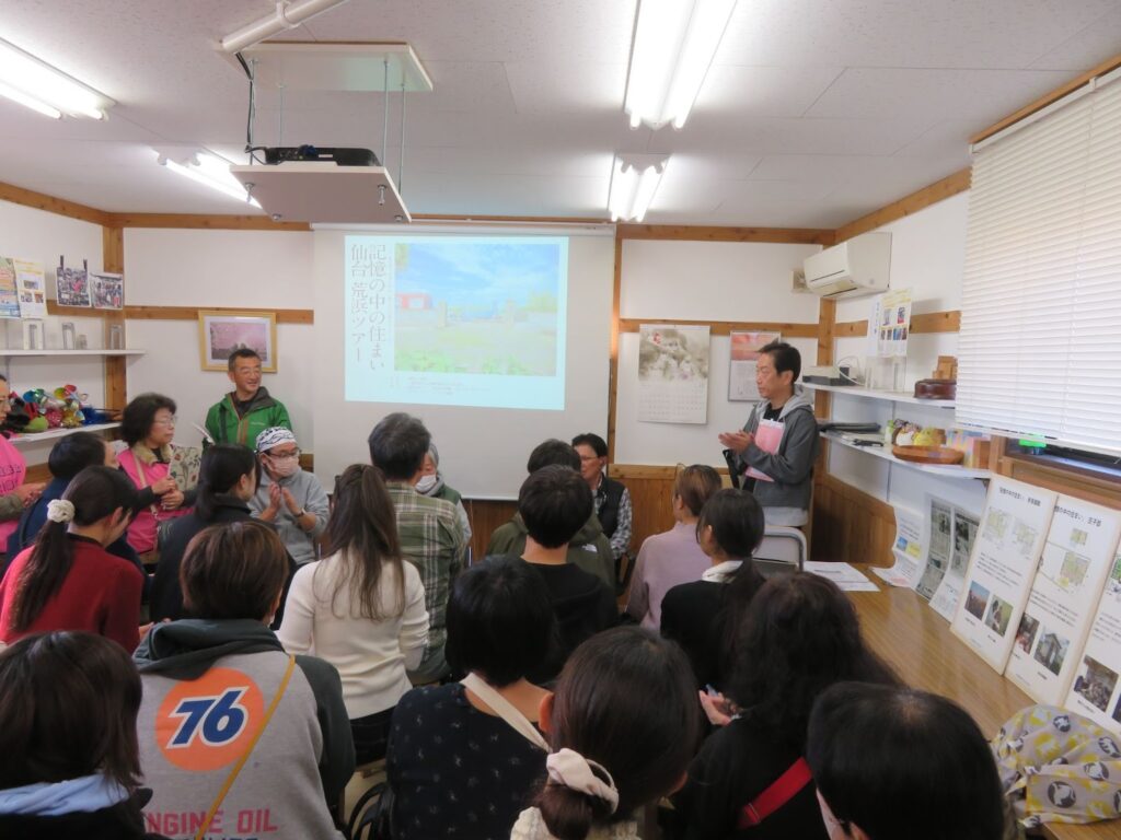 今回は、東日本大震災の記憶や語りではなく、震災以前の住まいの間取り図とあわせた思い出話を、荒浜の住民だった3人からお話を聞きながらのまちあるきのツアーだ。