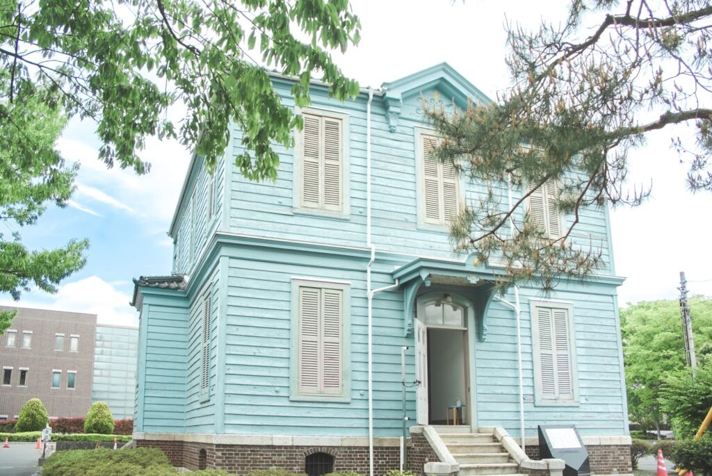 旧開智学校のすぐそばには、「松本市旧司祭館」があります。アーリーアメリカン様式のかわいらしい建築で、無料で見学できます。1889(明治22)年、フランス人のオーギュスタン・クレマン神父により建築され、2005(平成17)年に長野県宝に指定されました。